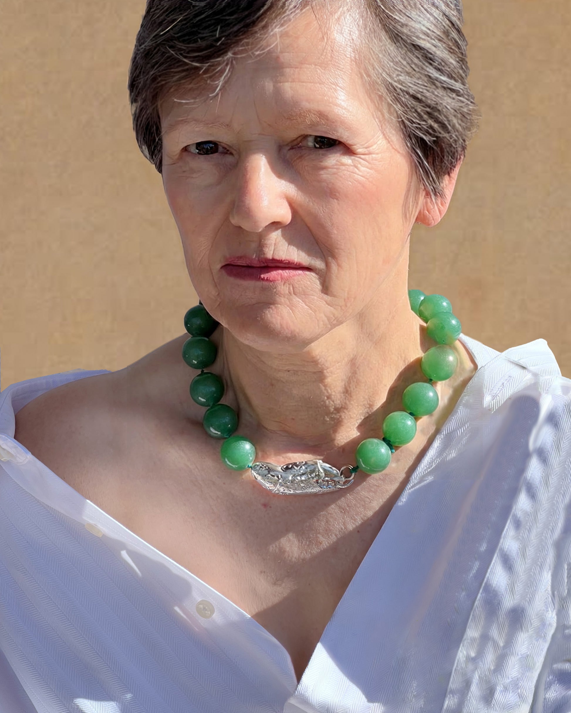 Große Aventurinperlen, von Hand gefädelt.